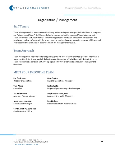 Tradd Management has been successful at hiring and retaining the best qualified individuals to complete