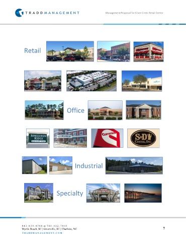 Management Proposal for Silver Creek Retail Center Retail Office Industrial Specialty 8 4 3 - 8 3 9 - 9 7 8 0 or 7 0 4 - 4 1 2 - 7 9 4 5 Myrtle Beach, SC | Greenville, SC | Charlotte, NC 7 T R A D D M A N A G E M E N T . C O M
