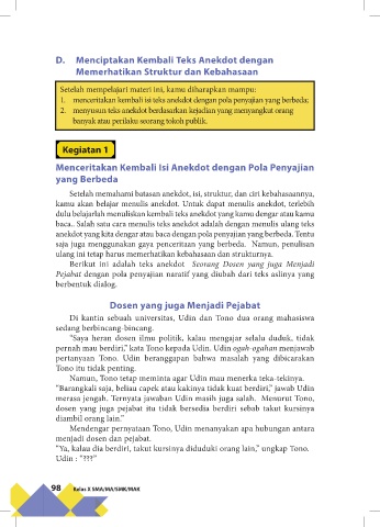 1. menceritakan kembali isi teks anekdot dengan pola penyajian yang berbeda;