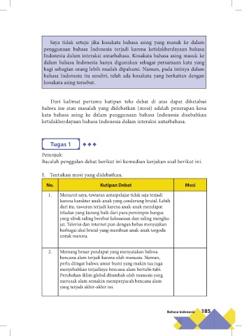 Bacalah penggalan debat berikut ini kemudian kerjakan soal berikut ini.