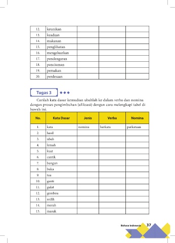 dengan proses pengimbuhan (afiksasi) dengan cara melengkapi tabel di