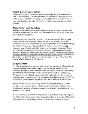 Students may bring treats for the entire class in recognition of their birthday.