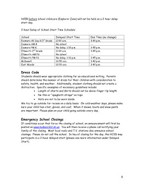 closings. Please do not call the school. In lieu of closing for the day, the HCSD may