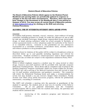 The Board of Education Policies which appear in the Student/Parent
