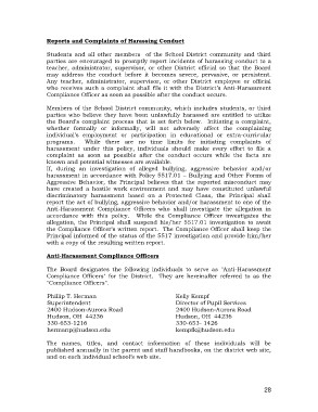 harassment in accordance with Policy 5517.01 – Bullying and Other Forms of