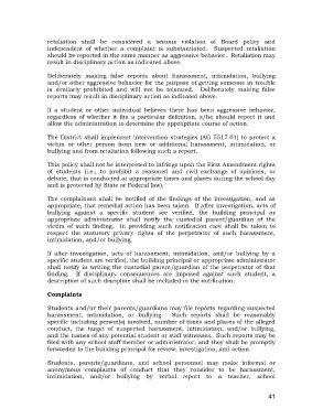 harassment, intimidation, or bullying. Such reports shall be reasonably