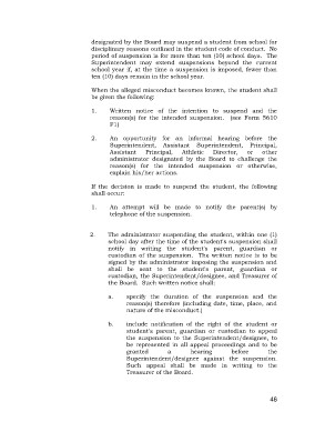 designated by the Board may suspend a student from school for