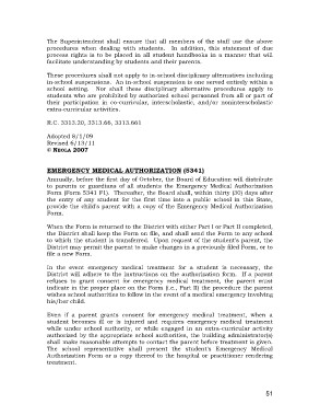 to parents or guardians of all students the Emergency Medical Authorization
