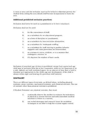 Seclusion of preschool-age children is prohibited, except that a preschool-age