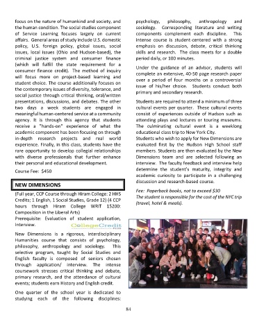 (Full year, CCP Course through Hiram College: 2 HHS The student is responsible for the cost of the NYC trip