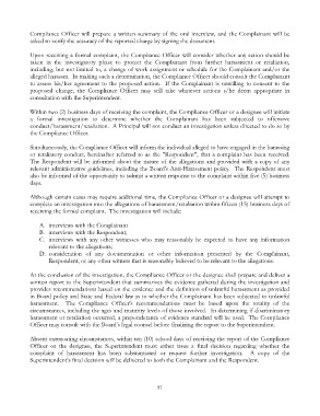 conduct/harassment/retaliation. A Principal will not conduct an investigation unless directed to do so by