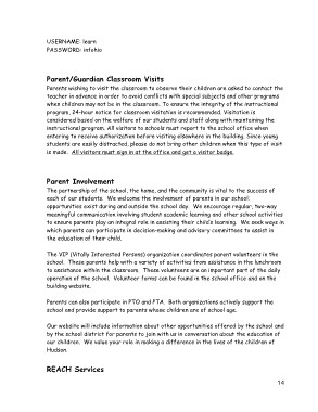 program, 24-hour notice for classroom visitation is recommended. Visitation is