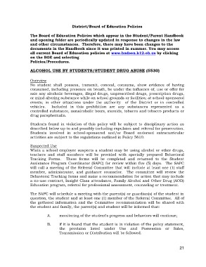 The Board of Education Policies which appear in the Student/Parent Handbook
