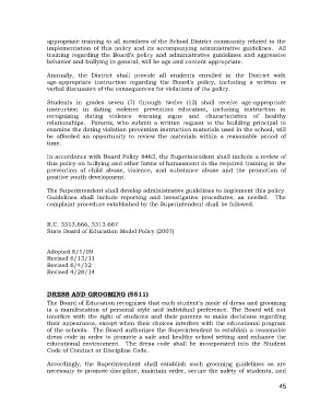 training regarding the Board’s policy and administrative guidelines and aggressive