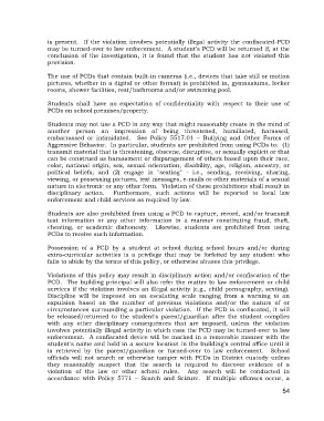 Aggressive Behavior. In particular, students are prohibited from using PCDs to: (1)