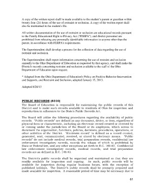 District's records concerning restraint and seclusion available to the staff of the Ohio