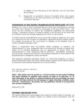 SUSPENSION OF BUS RIDING/TRANSPORTATION PRIVILEGES (5610.04)