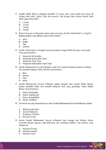 13. Syaikh Abdur Rauf as-Singkili memiliki 21 karya tulis, yang terdiri dari karya di