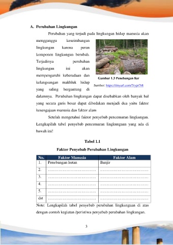 Note: Lengkapilah tabel penyebab perubahan lingkungaan di atas