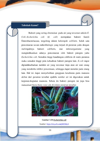 Escherichia coli. Semakin tinggi kandungan coliform di suatu perairan
