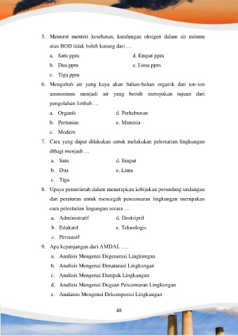 5. Menurut menteri kesehatan, kandungan oksigen dalam air minum