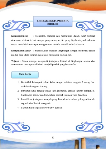 Tujuan : Siswa mampu mengenali jenis-jenis limbah di lingkungan sekitar dan