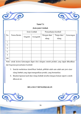 6. Buatlah laporan hasil daur ulang limbah tersebut dengan format seperti contoh
