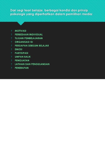 Dari segi teori belajar, berbagai kondisi dan prinsip