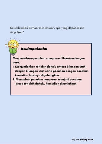 Menjumlahkan pecahan campuran dilakukan dengan