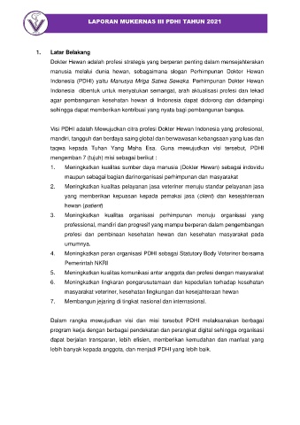 Visi PDHI adalah Mewujudkan citra profesi Dokter Hewan Indonesia yang profesional,