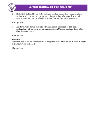 (2) Kode Etik Dokter Hewan Indonesia merupakan perjanjian yang mengikat