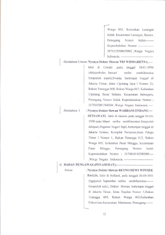 -Bendahara Umum: Nyonya Dokter Hewan TRI WIDHARETNA,----