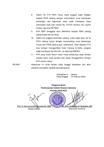 8. Dalam hal KTA PDHI hilang maka anggota wajib melapor