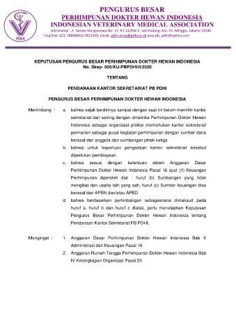 Mengingat : 1. Anggaran Dasar Perhimpunan Dokter Hewan Indonesia Bab X