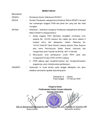 KESATU : Pendanaan Kantor Sekretariat PB PDHI