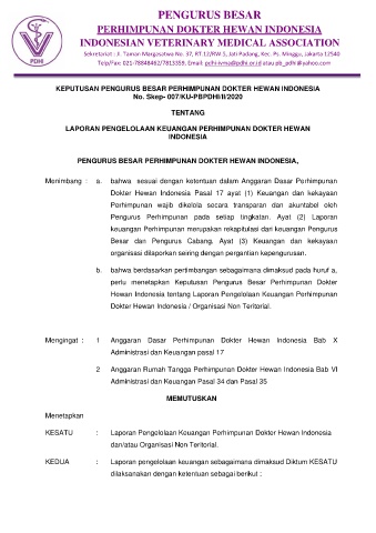 Menimbang : a. bahwa sesuai dengan ketentuan dalam Anggaran Dasar Perhimpunan