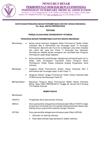 KEPUTUSAN PENGURUS BESAR PERHIMPUNAN DOKTER HEWAN INDONESIA