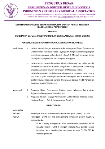 KEPUTUSAN PENGURUS BESAR PERHIMPUNAN DOKTER HEWAN INDONESIA