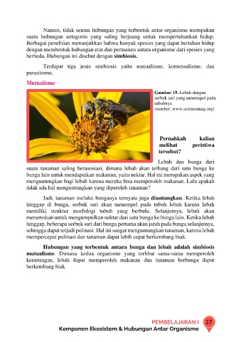 Hubungan yang terbentuk antara bunga dan lebah adalah simbiosis