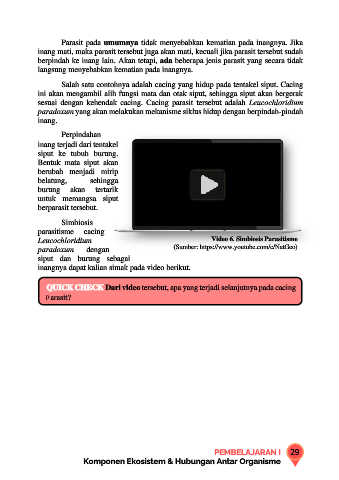 QUICK CHECK Dari video tersebut, apa yang terjadi selanjutnya pada cacing