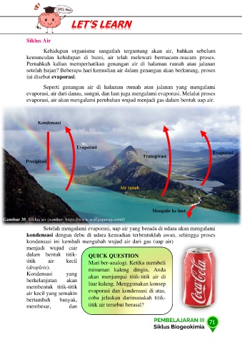 evaporasi, air akan mengalami perubahan wujud menjadi gas dalam bentuk uap air.