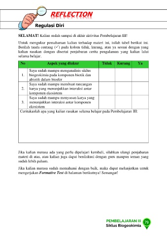 Ceritakanlah apa yang kalian rasakan selama belajar pada Pembelajaran III:
