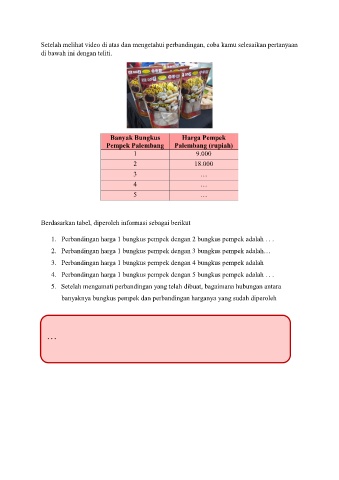 2. Perbandingan harga 1 bungkus pempek dengan 3 bungkus pempek adalah…