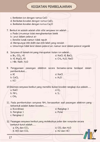 8. Senyawa di bawah ini yang merupakan ikatan ion adalah….