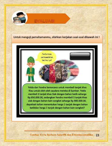 dapatkah kalian menentukan harga 1 tanjak dengan bahan
