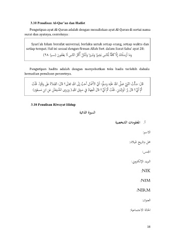 Pengutipan ayat Al-Quran adalah dengan menuliskan ayat Al-Quran di sertai nama