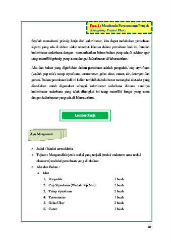 Alat dan bahan yang diperlukan dalam percobaan adalah pengaduk, cup styrofoam