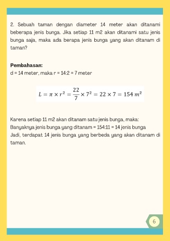 2. Sebuah taman dengan diameter 14 meter akan ditanami
