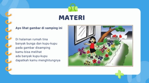 MATERI Ayo lihat gambar di samping ini Di halaman rumah tina banyak bunga dan kupu-kupu pada gambar disamping kamu bisa melihat ada banyak kupu-kupu dapatkah kamu menghitungnya