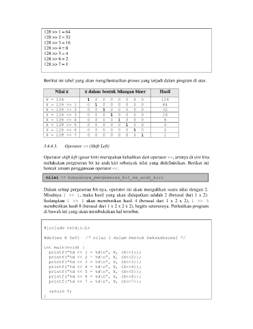 Dalam setiap pergeseran bit-nya, operator ini akan mengalikan suatu nilai dengan 2.